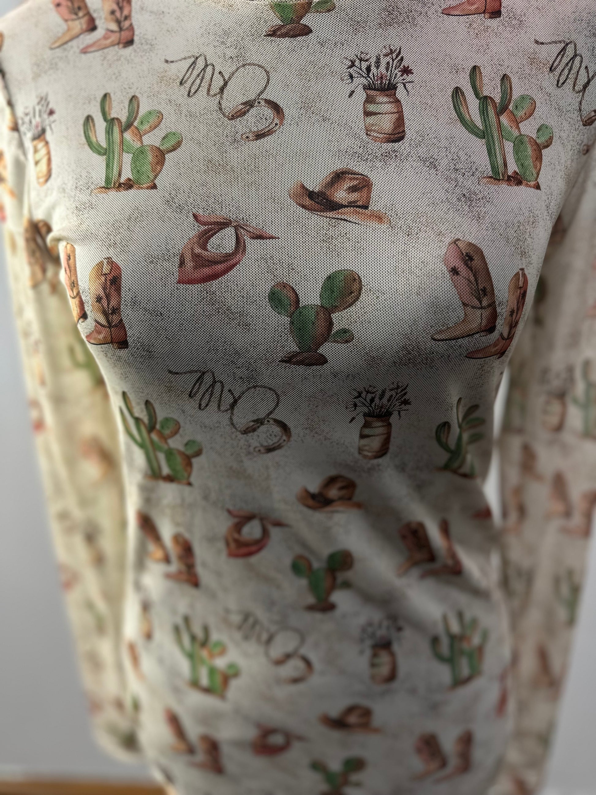 Love western pieces? This is the perfect mesh top for you! It’s super stretchy and has the thumb hole we love!