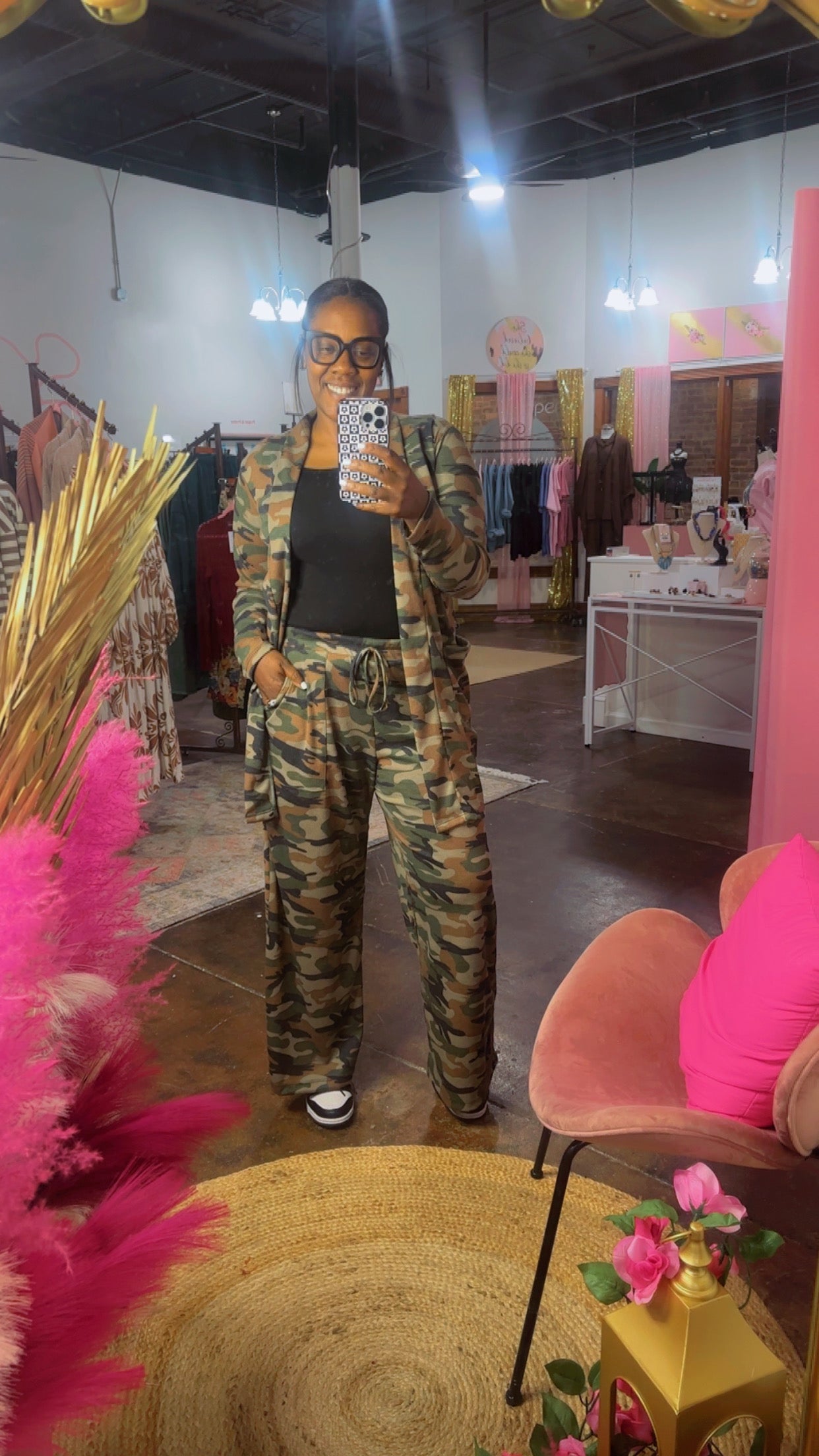 Soft, cozy and so so stretchy! These butter soft waffle camo pants are the perfect way to add a "pop" to your daily outfit!! Features panel pockets, wide legs and elastic waist with faux drawstring.