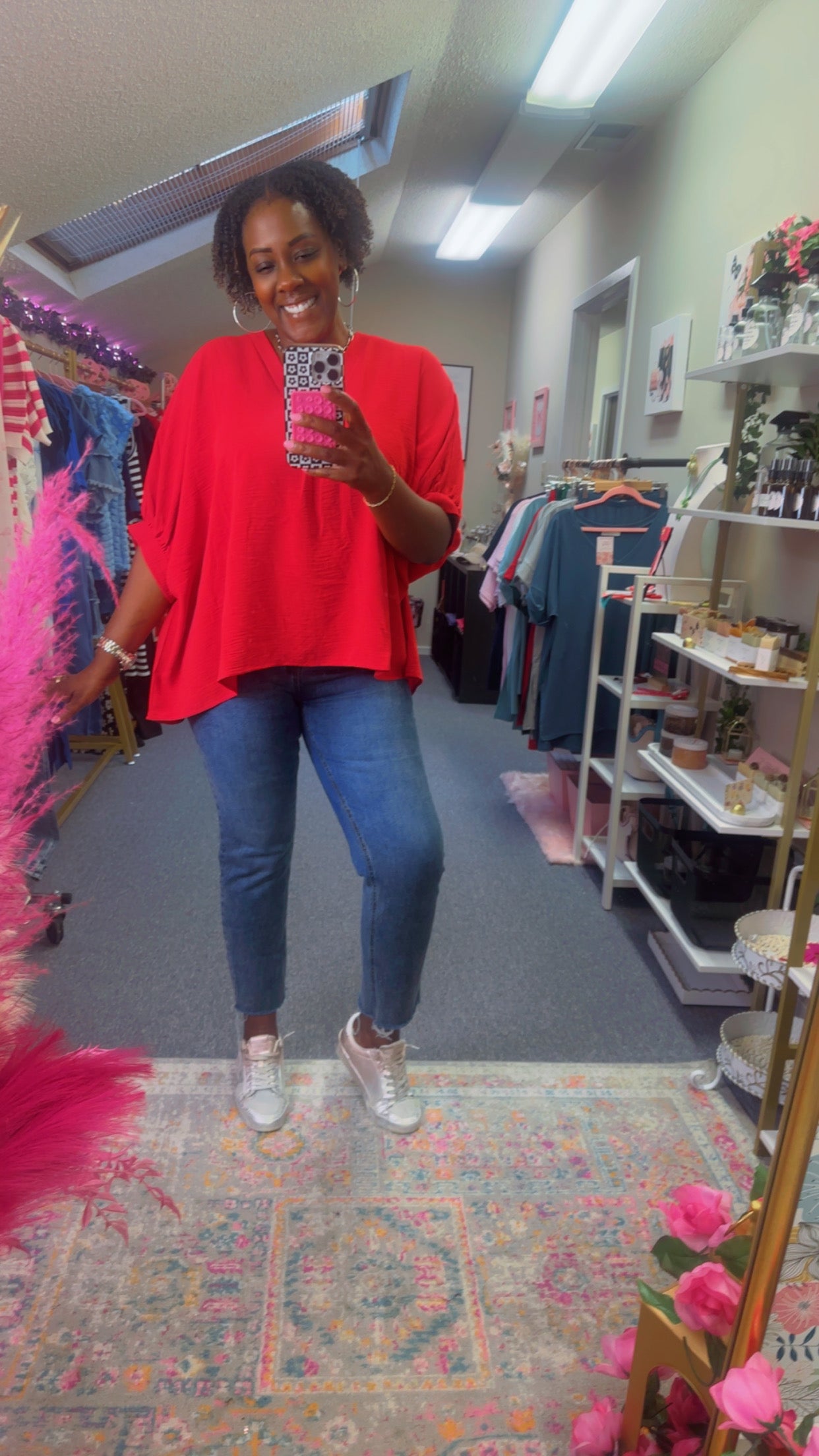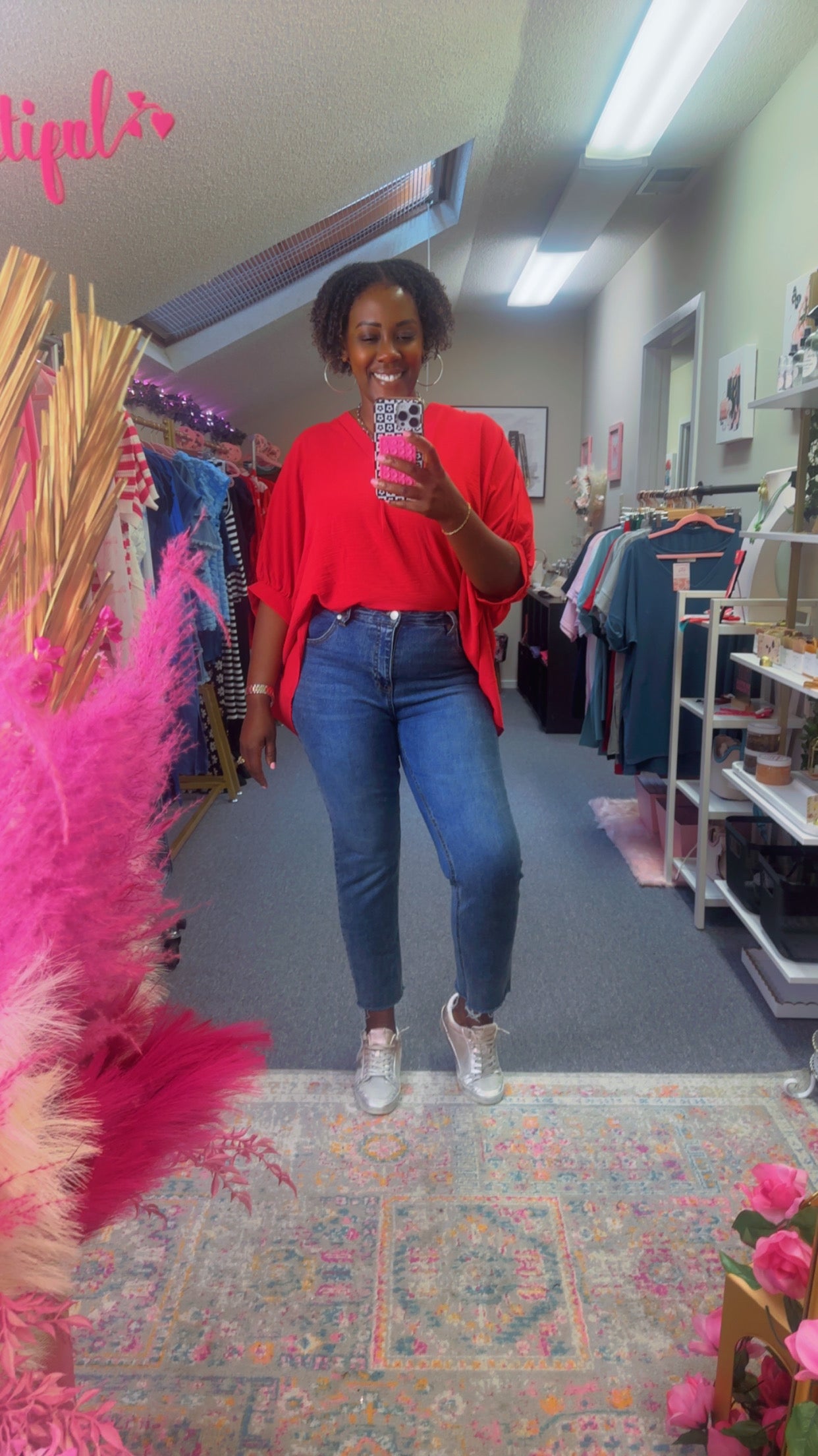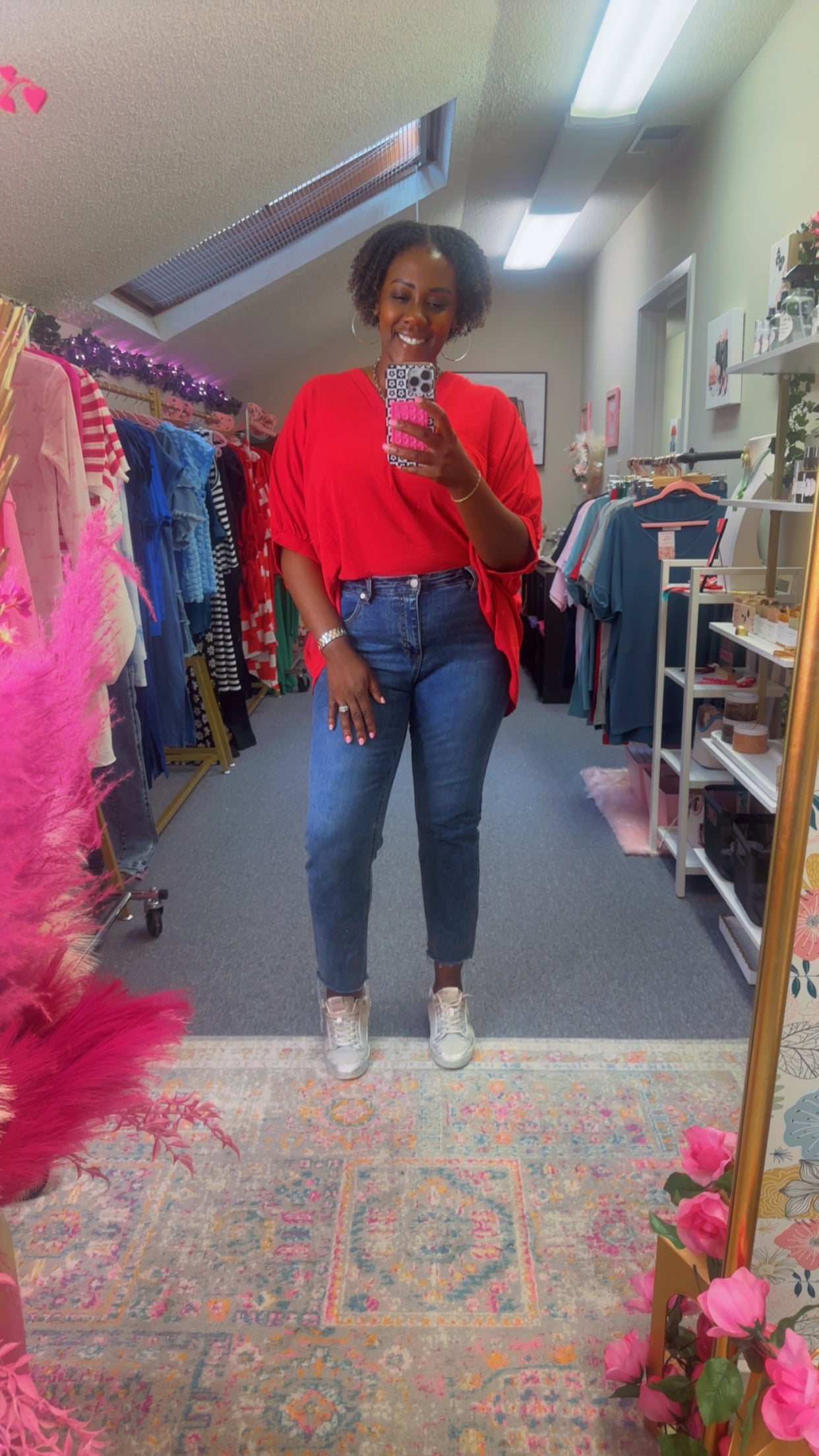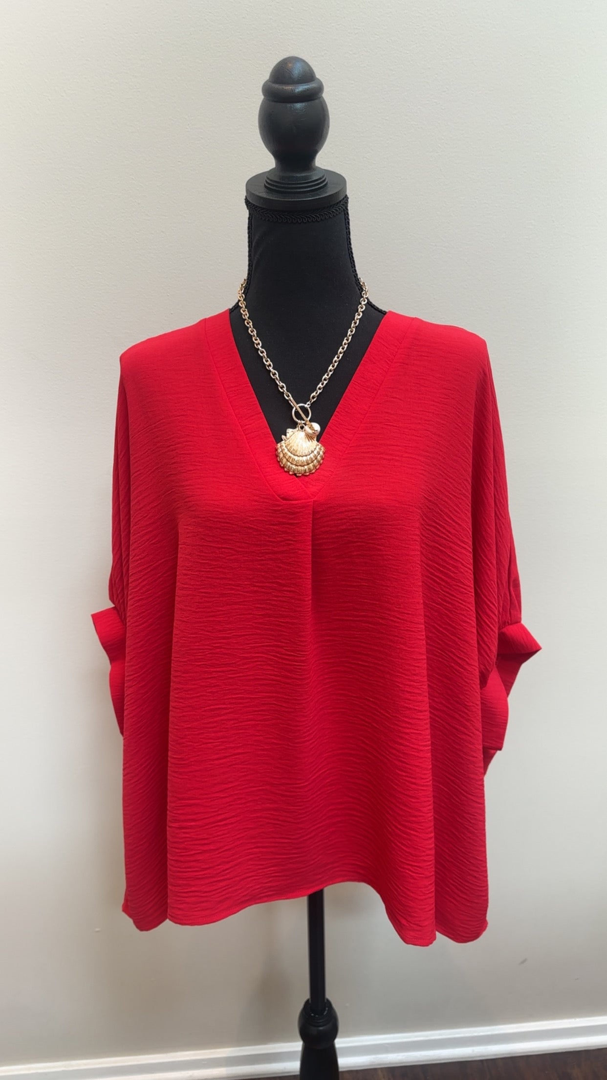 WOVEN AIRFLOW V-NECK PUFF HALF SLEEVE TOP