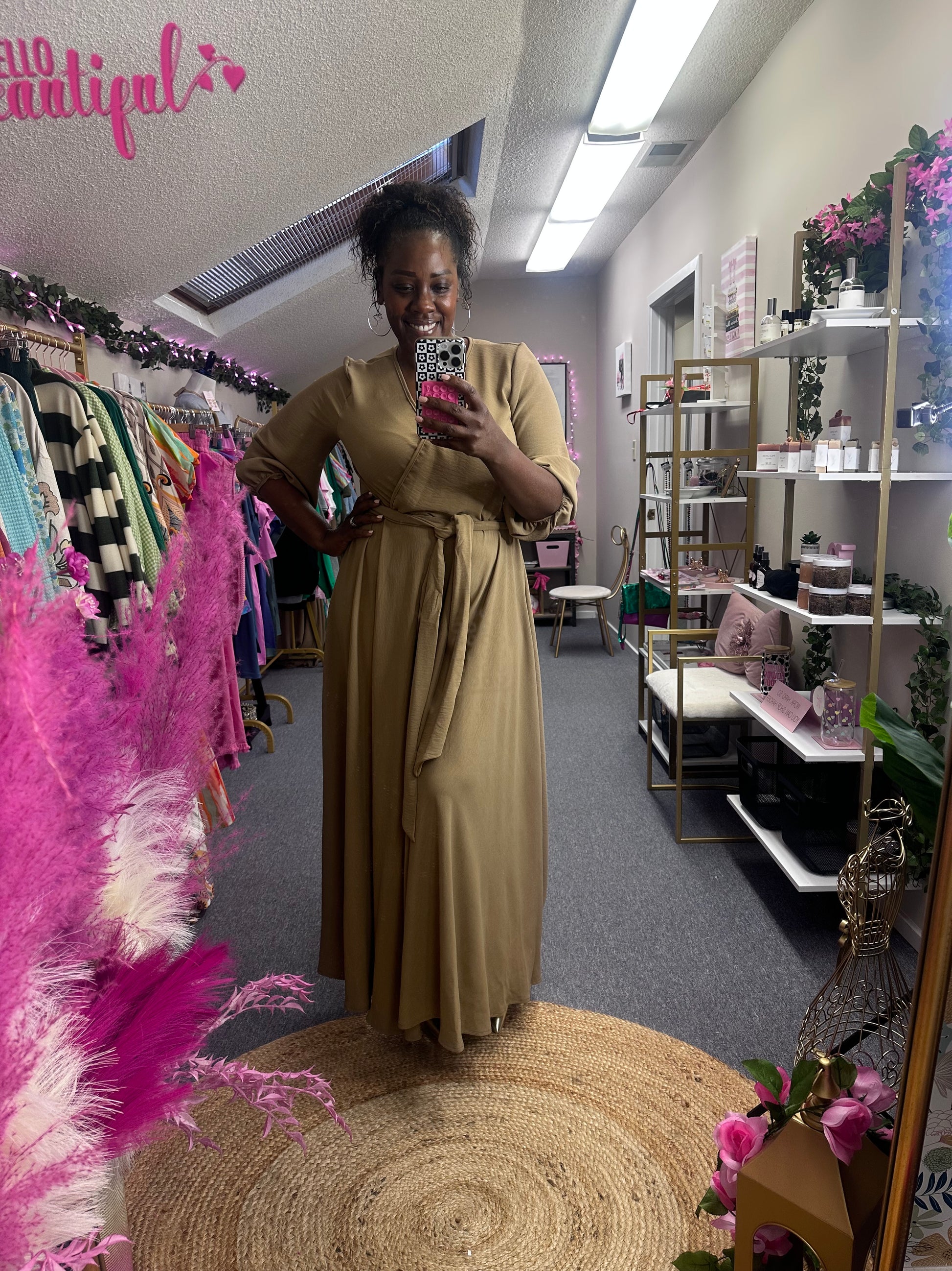 ✨ Introducing our stunning Lush Luxe Maxi Dress! 🌿 This show-stopping piece features a flattering silhouette that flows beautifully with every step. The adjustable belt cinches at the waist while adding a touch of elegance. Pair it with your favorite heels or sandals for a look that's effortlessly chic. 💚🌟