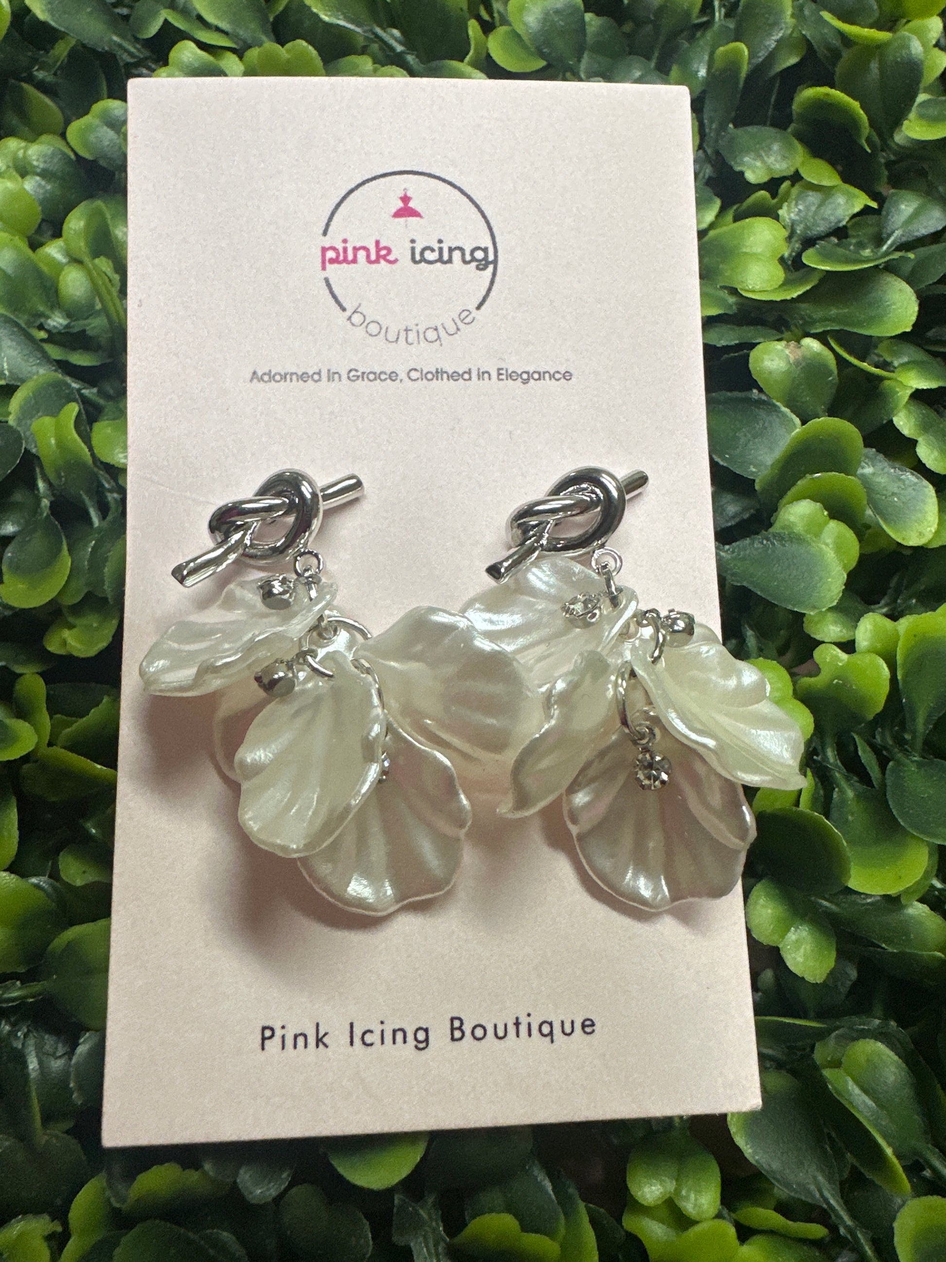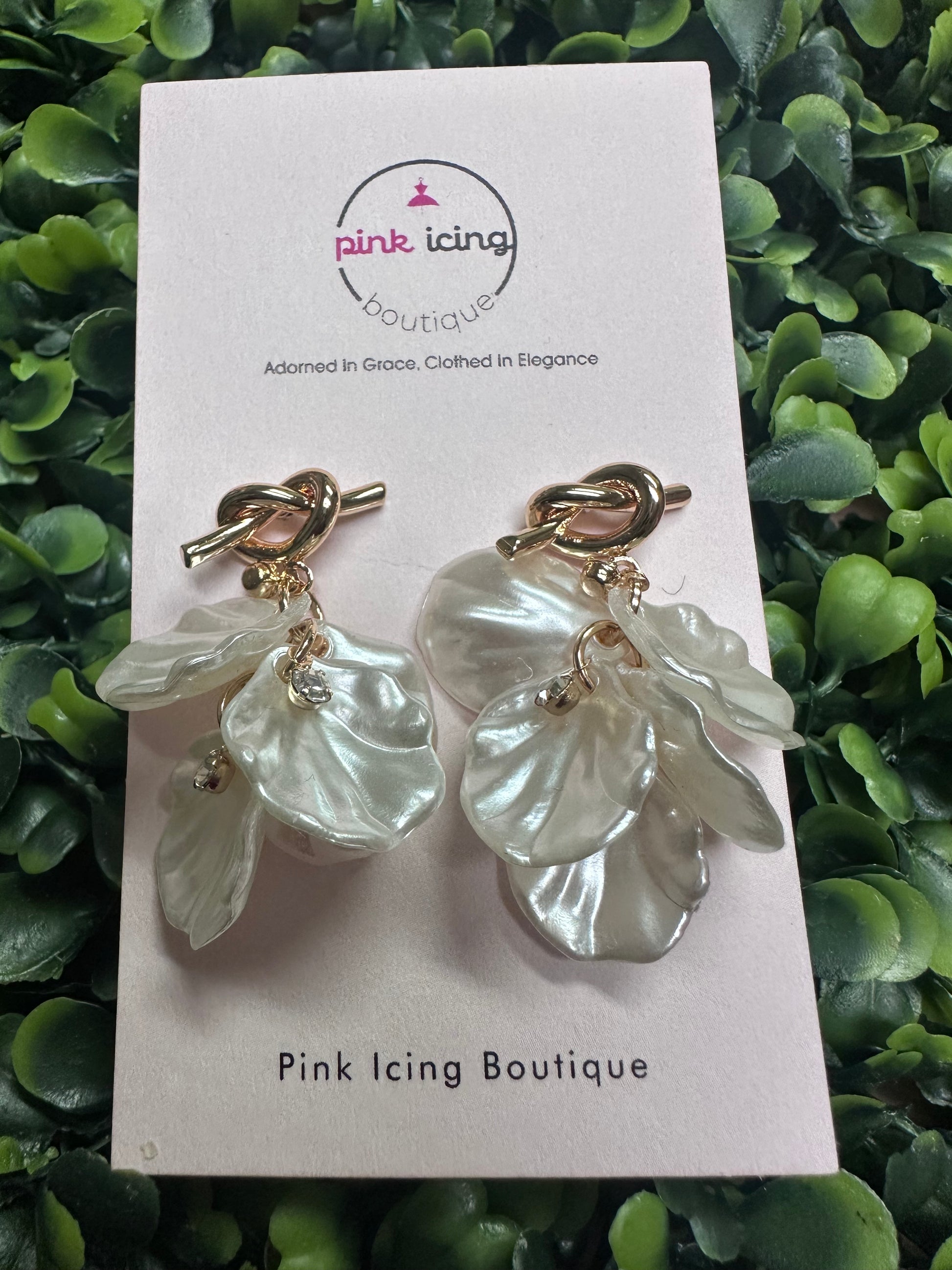These earrings boast a stunning arrangement of lustrous, pearl-colored shells.